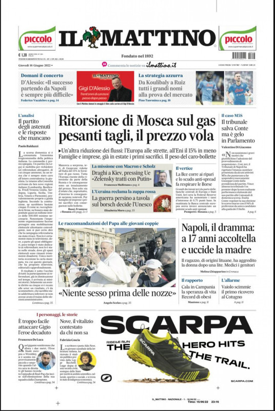 I quotidiani in edicola oggi, giovedì 16 giugno 2022. Il tema principale è quello del calciomercato, con Inter, Juventus e Napoli le protagoniste principali della rassegna stampa.