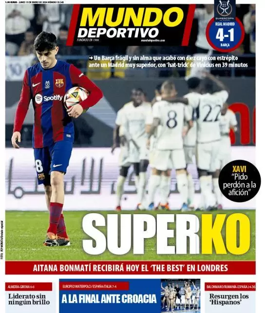 La prima pagina de Il Mattino dedica spazio al Napoli e all'impegno della Supercoppa italiana.