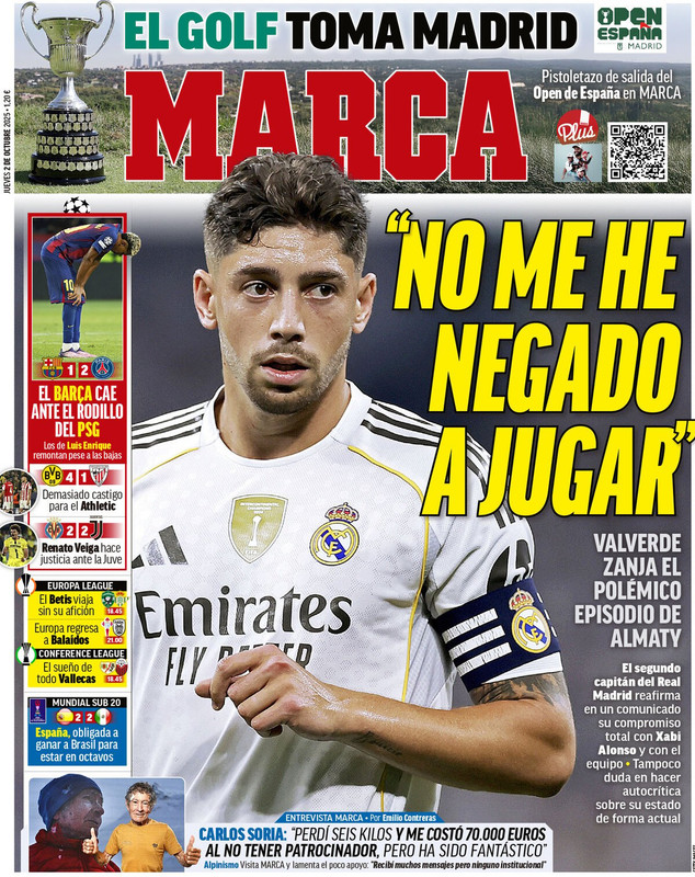 Di seguito le prime pagine dei principali quotidiani di giovedì 2 ottobre 2025.