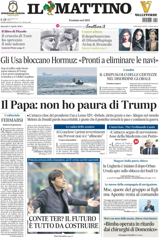 Di seguito le prime pagine dei principali quotidiani di martedì 14 aprile 2026.