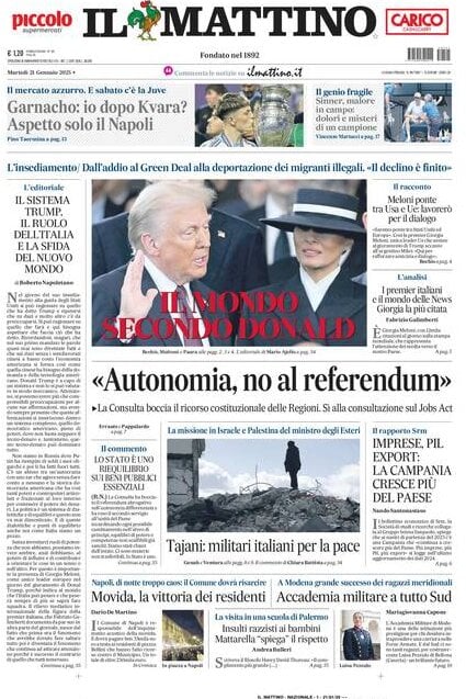 Di seguito le prime pagine dei principali quotidiani di martedì 21 gennaio 2025.