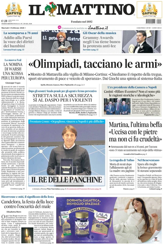 Di seguito le prime pagine dei principali quotidiani di martedì 3 febbraio 2026.