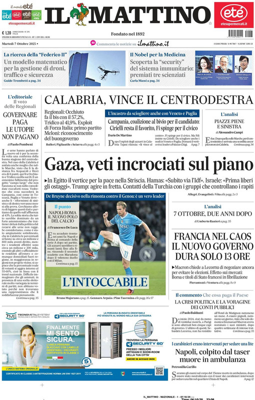 Di seguito le prime pagine dei principali quotidiani di martedì 7 ottobre 2025.