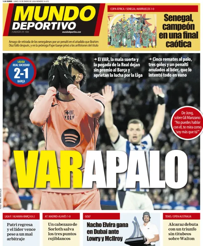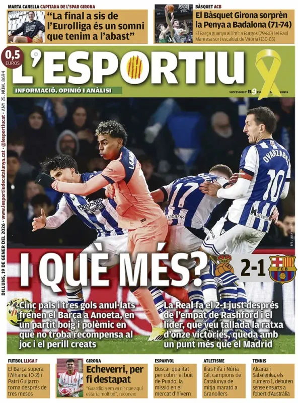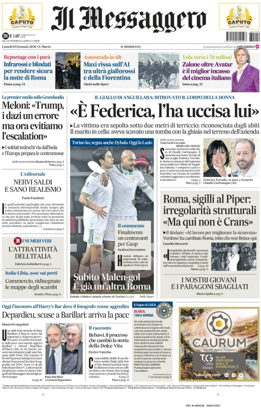Il napoli che deve fare i conti con nuovi infortuni, la 21esima giornata di Serie A, il ko del Barcellona e molto altro sulle prime pagine dei quotidiani nazionali e sportivi in edicola lunedì 19 gennaio 2026. Il Mattino apre con "La prova del nove". "Out anche Rrahmani e Politano: il Napoli domani in Danimarca con nove infortunati". Poi il commento "le due zavorre da rimuovere".