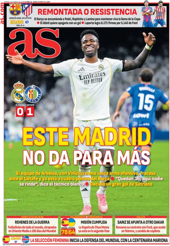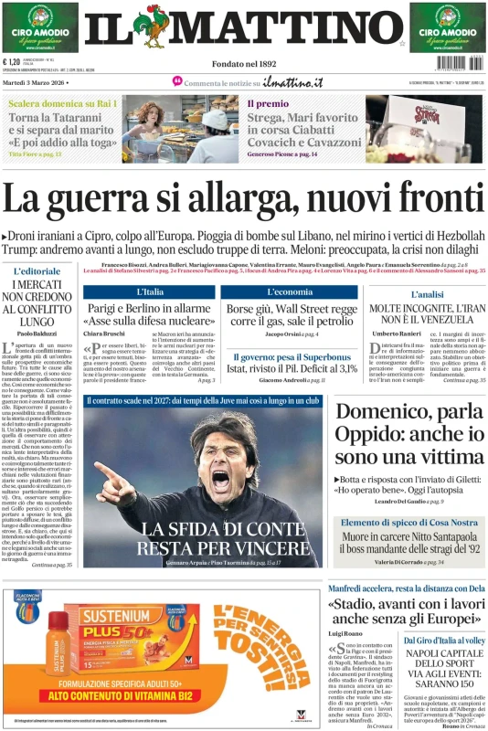 Di seguito le prime pagine dei principali quotidiani di martedì 3 marzo 2026.