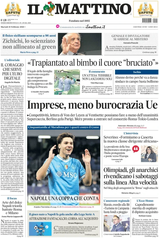 Di seguito le prime pagine dei principali quotidiani di martedì 10 febbraio 2026.