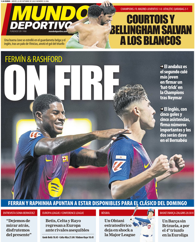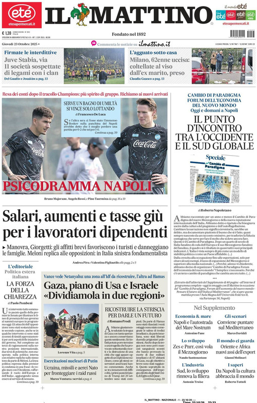 Di seguito le prime pagine dei principali quotidiani di giovedì 23 ottobre 2025.