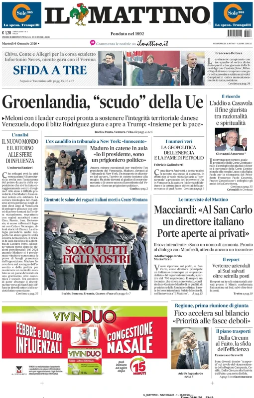 Di seguito le prime pagine dei principali quotidiani di martedì 6 gennaio 2026.