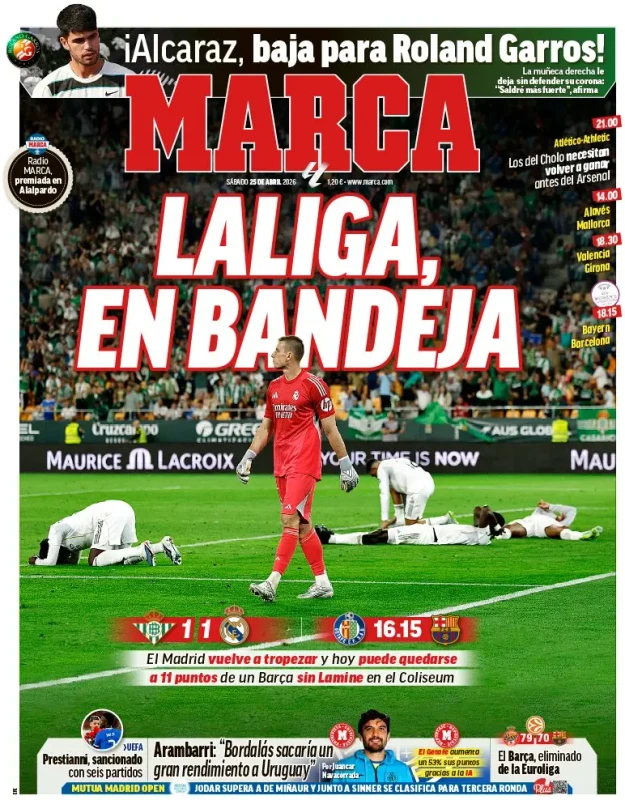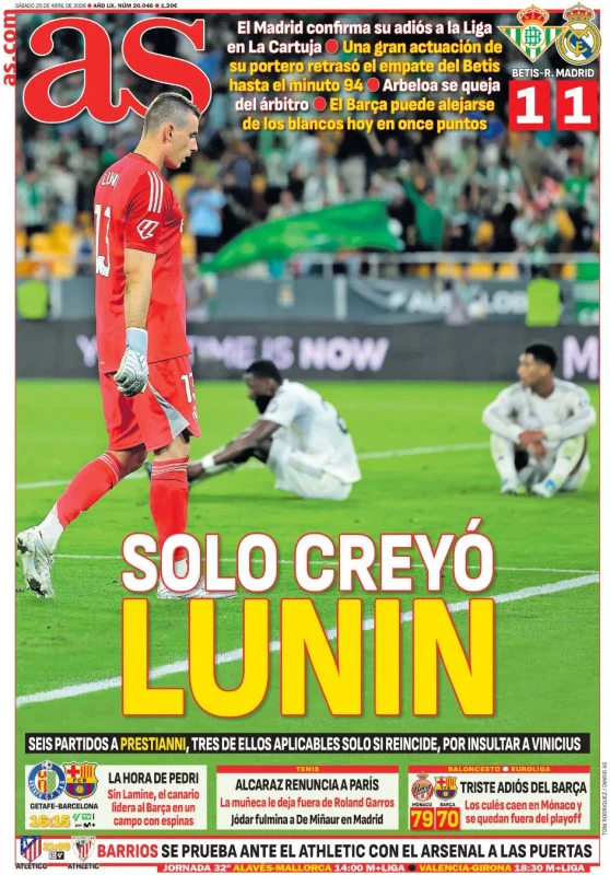 La vittoria del Napoli contro la Cremonese, il programma della 34esima giornata di Serie A, i risultati delle squadre estere. Questo e molto altro sulle prime pagine dei quotidiani nazionali i sportivi in edicola sabato 25 aprile 2026. Il Mattino apre con "Valanga azzurra". "Poker al Maradona: il Napoli dilaga, diverte e si riprende il secondo posto. Alisson strepitoso, McTominay sbaglia un rigore". "Il riscatto dei big nella notte show! Le pagelle: Scott e Kevin che festa. L'Equipe accusa: "Imbroglio Lukaku". Attacco dai francesi".
