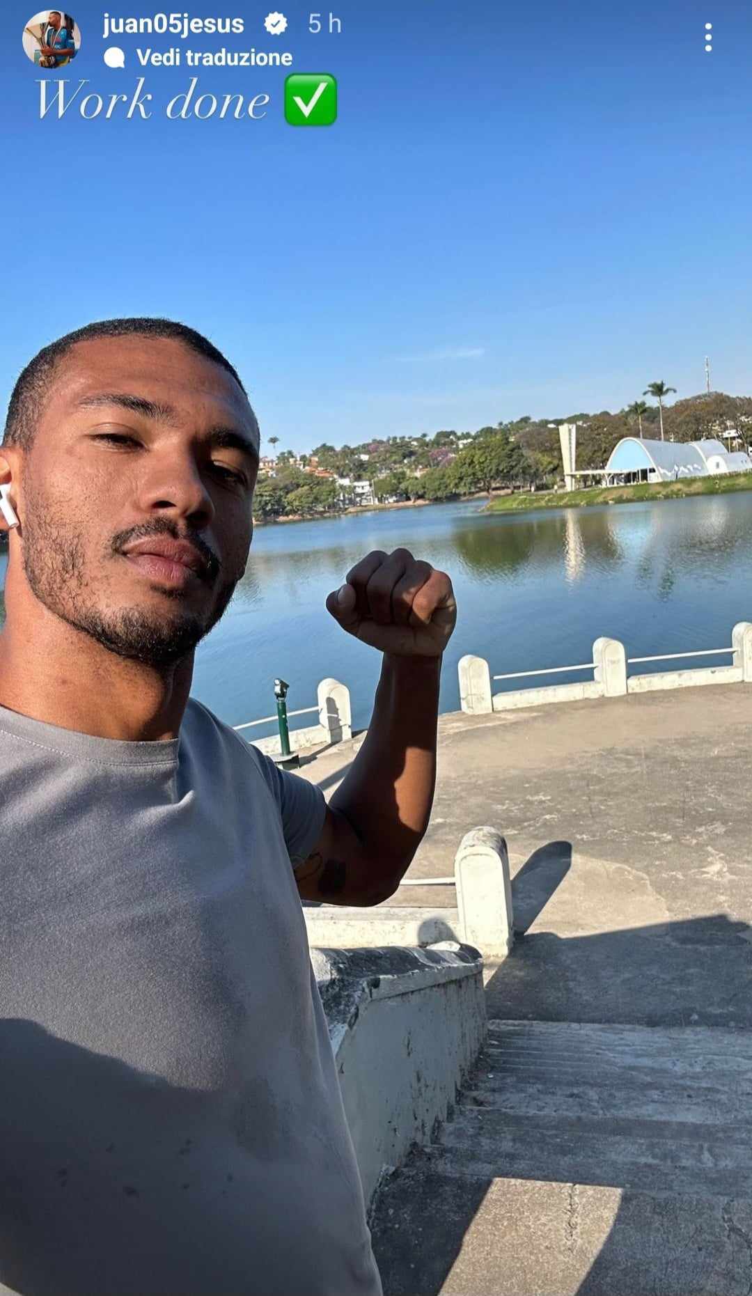 "Allenamento fatto", scrive su Instagram Juan Jesus, difensore del Napoli, pubblicando un selfie scattato durante la sua vacanza in Brasile.
