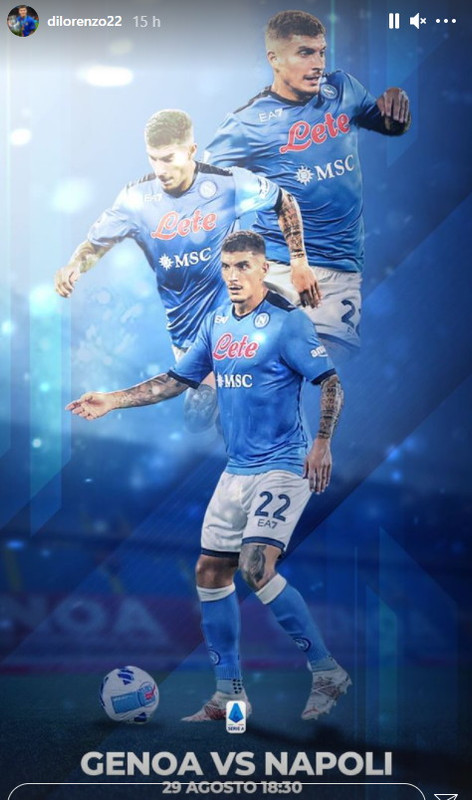 GENOVA - "Genoa vs Napoli", Giovanni Di Lorenzo, terzino azzurro è pronto per la sfida in programma oggi. Ecco una foto da lui pubblicata su Instagram.