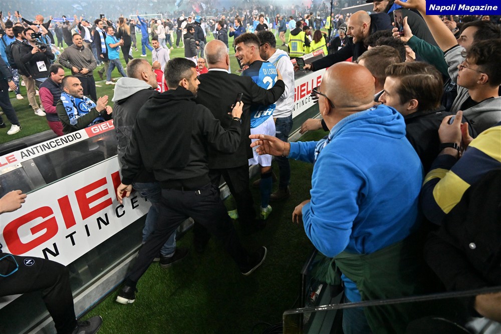 Campioni d’Italia, Campioni d’Italia, Campioni d’Italia! Il Napoli vince il terzo scudetto della sua storia. L’ultima volta accadde 33 anni fa, nel 1990. Quello era il Napoli dello splendore maradoniano, delle stimmate messianiche del D10S che adesso veglia e sorride dall’alto sulla Cattedrale a cielo aperto dedicata al suo nome. Questo è il Napoli dell’imprimatur illuminato e visionario di Aurelio De Laurentiis, di una Società virtuosa, di una dirigenza ispirata, della sopraffina strategia tattica e della dialettica sagace di Luciano Spalletti. Il Napoli di un gruppo meraviglioso che ha portato in giro l’Enorme Bellezza di una squadra che inciderà a caratteri dorati e cubitali il proprio nome nel marmo della leggenda. Ad Udine finisce 1-1 col gol di Osimhen, l’Uomo Mascherato che diventa immagine iconica destinata alla più raffinata filatelia. E' la tappa finale di una corsa leggendaria. Termina la partita e comincia la festa infinita che parte dal Friuli e arriva al Maradona attraversando tutto il Continente e lo Stadio virtuale di una comunità planetaria senza confine. 4 maggio 2023: la storia ha voluto ancora una data. L’urlo sale dal profondo dell’anima e tocca le corde del cuore, come una soave melodia angelica. Napoli è la Capitale della felicità. Da qui all’Eternità. Dipingiamo l’Universo di azzurro e balliamo sul Mondo. Popolo d’amore, Terra immortale di romantici sognatori e invincibili Eroi. Abbracciamoci forte. I CAMPIONI SIAMO NOI!