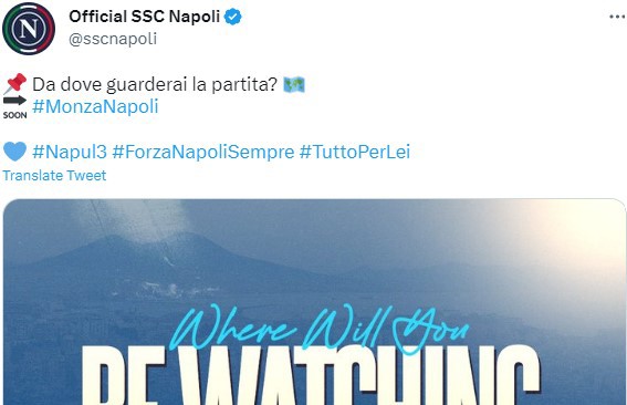 "Da dove guarderai il match?", scrive la SSC Napoli su Twitter a poche ore dal match dell'U-Power Stadium contro il Monza.