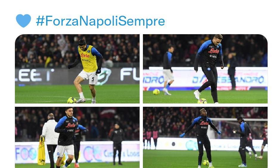 "Manca poco a Salernitana-Napoli", scrive il club azzurro su Twitter, pubblicando alcuni scatti del riscaldamento degli azzurri prima del match. Ecco Kim Min-Jae, Eljif Elmas, Piotr Zielinski e Victor Osimhen in campo all'Arechi.