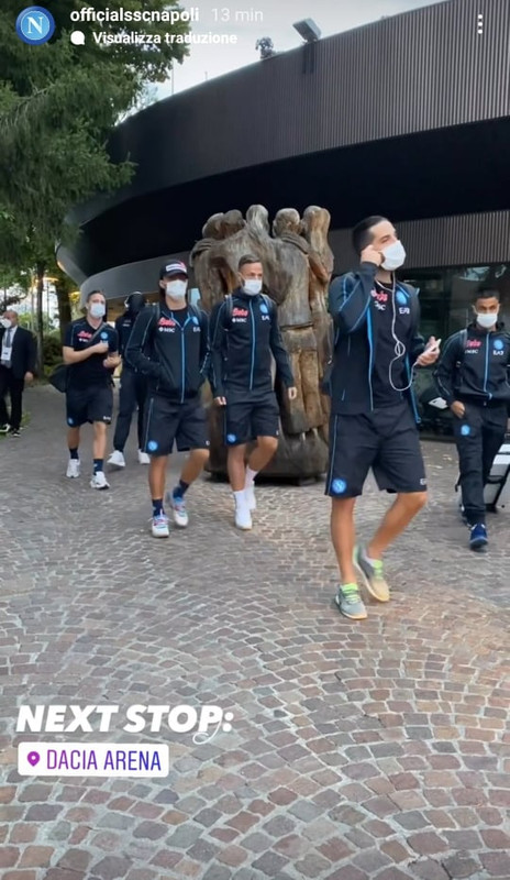 Gli azzurri lasciano l'albergo e si dirigono alla Dacia Arena in vista della sfida di campionato contro l'Udinese, come si evince da una storia Instagram pubblicata dalla SSC Napoli.