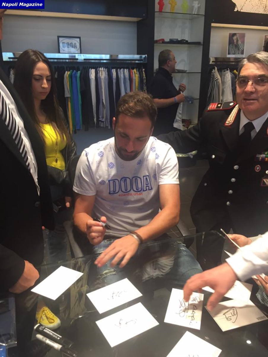 NOLA (NAPOLI) - Gradita visita del bomber Gonzalo Higuain nella sede di DOOA all'Interporto di Nola all'amico Ciro Sorbino. Durante l'incontro il bomber azzurro ha promesso tre gol nella prossima ed ultima sfida casalinga. Intanto ecco le immagini di "Napoli Magazine".