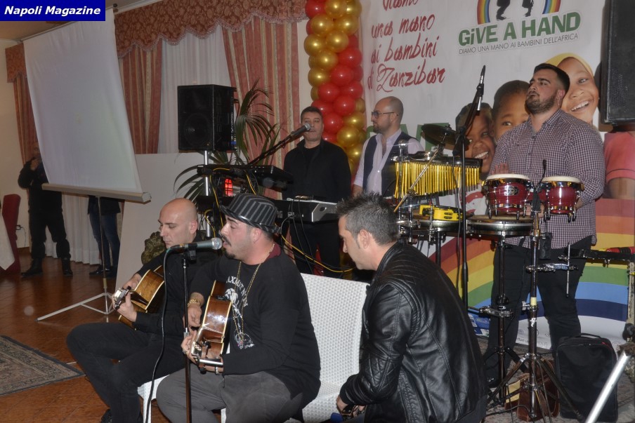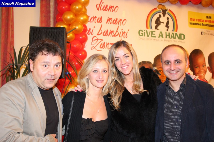 LAGO PATRIA - Nella suggestiva cornice di "Villa Er Più", si è tenuta la serata di beneficenza "Give a Hand", per sostenere i bambini africani e donare un sorriso in particolare allo Zanzibar per la costruzione di una scuola. Hanno partecipato diversi personaggi del mondo dello sport, dello spettacolo, artisti e diversi calciatori del Napoli, tra i quali Pepe Reina, Marek Hamsik, Nathaniel Chalobah, Juan Camilo Zuniga, Omar El Kaddouri, Faouzi Ghoulam, Kalidou Koulibaly, Maria Soledad Cabris (promotrice dell'evento), i giornalisti Antonio Petrazzuolo, Rosa Petrazzuolo, Vincenzo Petrazzuolo e Jolanda De Rienzo, che ha condotto la serata, impreziosita dalle incursioni degli attori comici Peppe Iodice, Lino D'Angiò ed Ivan e Cristiano di Made in Sud. Torta speciale dedicata all'evento e realizzata da Cake Design. La serata è stata organizzata da Antonella Sammarco, Federica e Davide Poziello del Beauty Relax. Ecco le 232 Foto e il Video del coro "Un giorno all'improvviso" realizzati per "Napoli Magazine", tra gli sponsor della manifestazione, dalla nostra inviata Francesca Falvo.