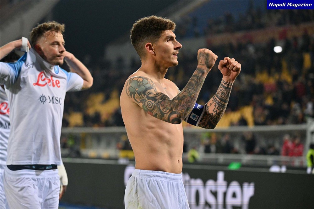 NAPOLI - Non è stata una gara dominata, ma poco importa. Serviva una reazione dopo le 4 sberle prese dal Milan ed i tre punti di Lecce hanno rappresentato una bella iniezione di fiducia in vista dell'andata dei Quarti di Champions contro i rossoneri. Tra l'altro, ad avvalorare la vittoria, sono giunti anche i pareggi di Milan (a reti bianche) e Inter (appena 1 gol per parte) contro Empoli e Salernitana. Partita tutt'altro che in discesa, considerata l'assenza di Osimhen, e il momentaneo gol del pareggio di Di Francesco, abile a far passare sotto le gambe di Rrahmani (non al meglio della forma) un suo guizzo improvviso. In precedenza da incorniciare la rete di testa di Di Lorenzo, ben imbeccato da Kim. Ecco, questa, a mio avviso, è stata la vittoria del Capitano. Non solo per i messaggi lanciati nello spogliatoio durante la settimana, insieme a Spalletti, ma anche per il salvataggio in scivolata sull'1-1, a guardia della porta, che (unito al gol) ha dato un valore immenso alla sua prestazione. Se poi ci aggiungiamo che in occasione dell'1-2, mentre Gallo e Falcone disegnavano il sigillo decisivo nella porta sbagliata, il "dottor" Giovanni Di Lorenzo era sempre li' "in agguato", ecco che il 9 in pagella che gli ho attribuito nell'immediato post partita assume il giusto significato che merita. Ma riavvolgiamo il nastro. Evitabile il gol preso dal Napoli: come contro il Milan, sulla traversa di Ceesay non c'è stato un assalto al pallone per sventare il pericolo in corso. Poi però gli azzurri hanno preso le giuste misure, ed oltre al salvataggio in ripiegamento difensivo di Lozano, fatta salva l'opera a tutto campo di 'San' Di Lorenzo, non ricordo altri grandissimi pericoli nell'area di Meret. Piuttosto mi sarei aspettato di piu' da Rrahmani, apparso in fase di impostazione poco preciso nei lanci verso l'attacco. Ritrovato il muro Kim, ho trovato positivo anche il contributo offerto da Mario Rui, geometra del lato sinistro del campo. Il tutto nonostante la gabbia creata a centrocampo intorno a Lobotka, che ha avuto effetto fino ad un certo punto perche' lo slovacco e' riuscito a destreggiarsi ugualmente (nonostante il pressing asfissiante di Hjulmand e Maleh). La novità assoluta, dal punto di vista tattico, è stata rappresentata da Elmas: nel suo trotto tra le linee un gioco oscuro utile per creare superiorita' numerica in mediana. Da rivedere Anguissa, con un passo felpato non efficace che anzichè rivolgere il possesso palla in avanti ripiegava puntualmente in difesa. Bene Ndombele, tosto e pimpante con il nuovo look in stile Canè. Il lavoro degli attaccanti, invece, non ha portato alla raffica di conclusioni a cui siamo abituati. Raspadori non ha inquadrato mai la porta, con Lozano che (al di la' di un sinistro a fil di palo) ha faticato a trovare il varco giusto. Peccato per l'infortunio a Simeone, bravo a fare da boa in attacco nei pochi minuti in cui ha giocato. Passerella per Politano, Zerbin ed Olivera. Come al solito e' venuto fuori alla distanza, con la sua classe, Kvaratskhelia. In attesa di Osimhen (che a Milano vuole esserci dal primo minuto), sono segnali piu' che incoraggianti. Ora e' giusto riporre nel cassetto "le gare da riempimento". E' tempo di Champions, serve l'abito delle grandi occasioni, intanto nelle ore d'attesa che ci separano dal prossimo impegno... Buona Pasqua e Pasquetta a tutti!