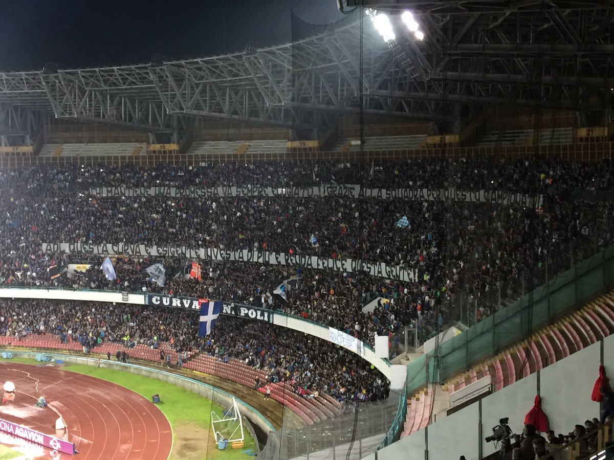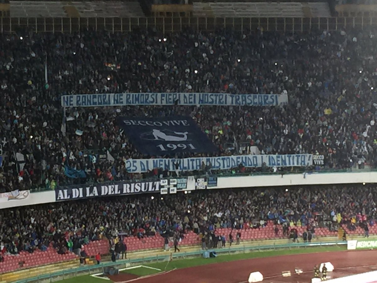 NAPOLI - Napoli-Frosinone, striscioni nelle Curve. Ecco due foto pubblicate su Twitter da "Napoli Magazine". In Curva A: "Chi mantiene una promessa va sempre elogiato, grazie alla squadra per questo campionato. Adl, questa curva è esigente, investa di più e renda felice questa gente". In Curva B: "Nè rancori nè rimorsi, fieri dei nostri trascorsi...".