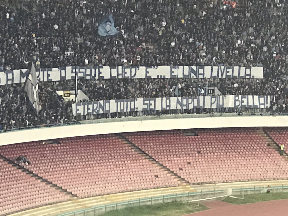 NAPOLI - Striscione dedicato a Totò in Curva B in occasione di Napoli-Udinese: "La morte 'o ssaje ched'è... è una livella. Eterno Totò, sei la Napoli più bella!". Ecco una foto di NapoliMagazine.Com