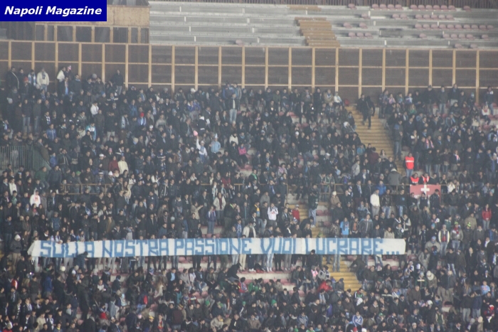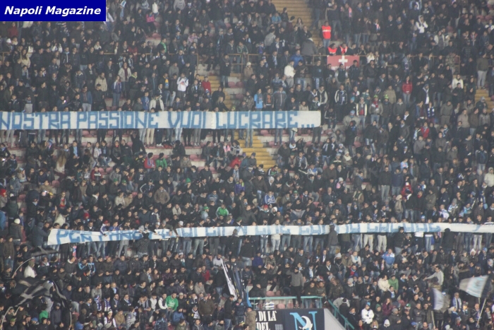 NAPOLI - Fischi a fine gara e striscioni contro il mercato azzurro: il San Paolo, prevedibilmente, non ha gradito il pari con il Chievo e ha chiesto al presidente Aurelio De Laurentiis, che non era allo stadio visto che si trova negli Stati Uniti, maggiori investimenti sul mercato. In curva B è apparso uno striscione: ''Sulla nostra passione vuoi lucrare per fare dei film che fanno cag...''. Mentre da entrambe le curve sono partiti diversi cori che incitavano il patron a spendere di più sul mercato.