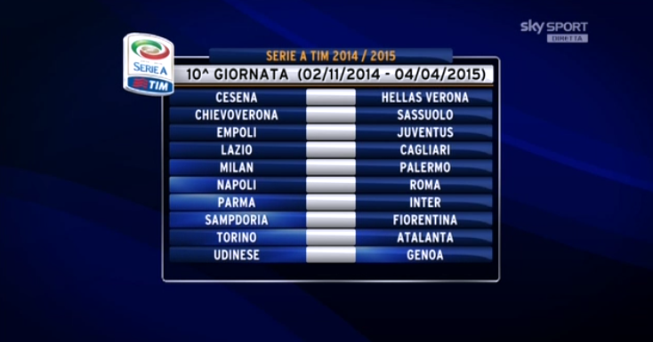 NAPOLI - Il campionato di Serie A inizierà domenica 31 agosto 2014 e si concluderà domenica 31 maggio 2015. La Lega di serie A ha reso noti i criteri per la compilazione dei calendari. Ad esempio, nei turni infrasettimanali non si potranno incontrare Inter, Juve, Milan, Napoli e Roma; non potranno inoltre svolgersi i derby. Non sono previste teste di serie.