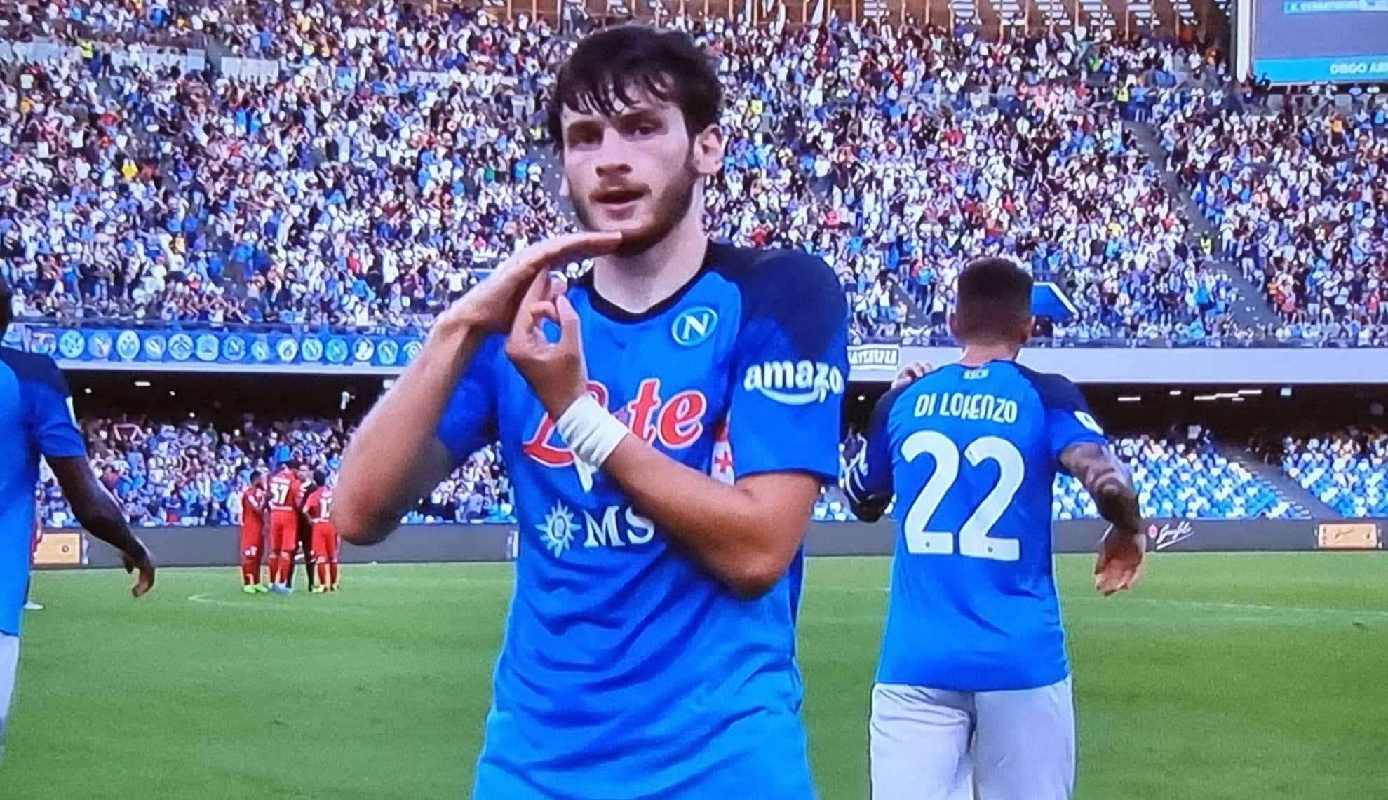 KVARATSKHELIA: Un gol da fenomeno, a fil di palo, alla sinistra di Di Gregorio, poi sigla il raddoppio personale con finta di destro e sinistro a fil di palo. 9