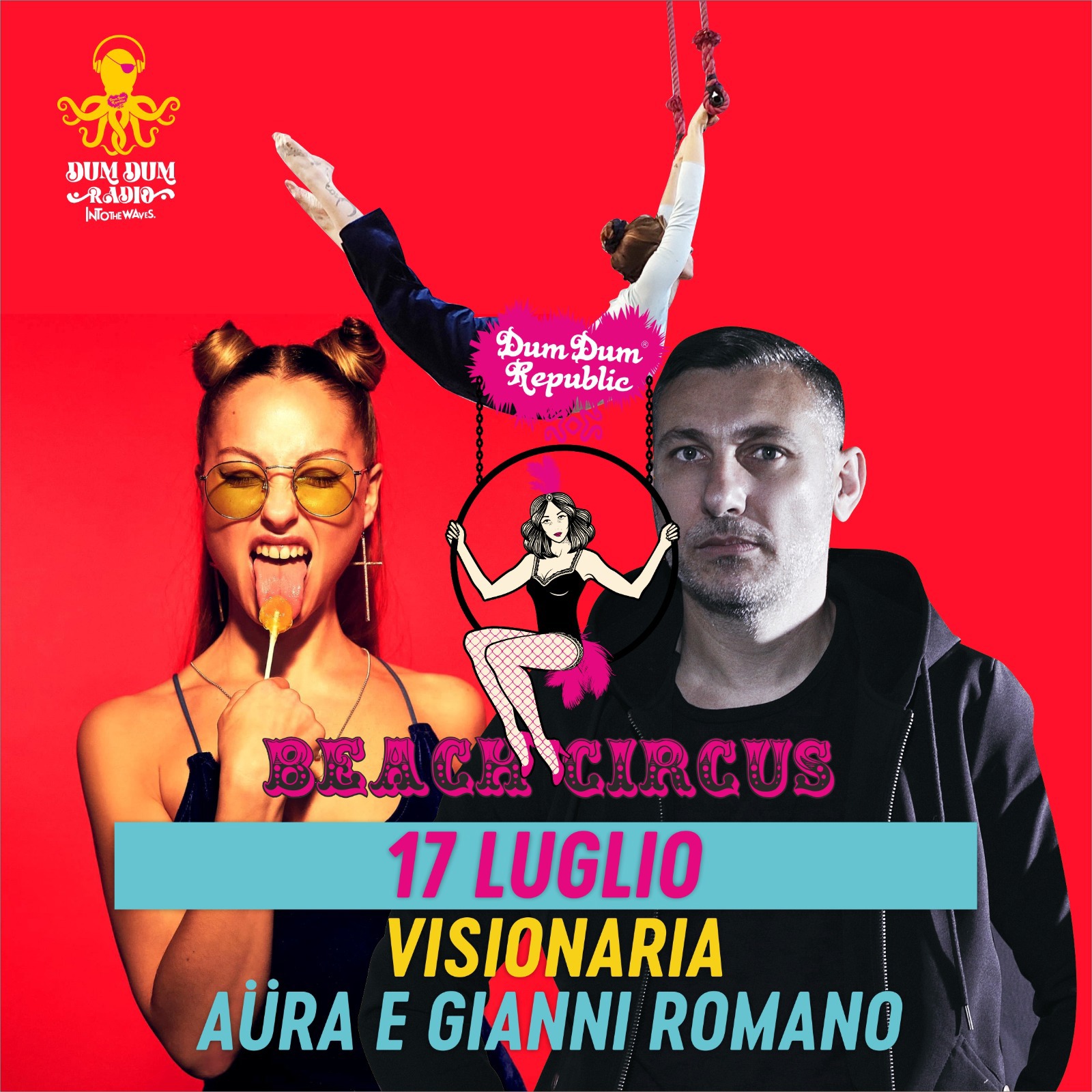 Il fascino della danza aerea incanta il Dum Dum Republic. Sirene e marinai, poeti e viaggiatori, che si spalanchi la magia del Beach Circus. Uno show travolgete, domenica 17 luglio (start ore 19) con Visionaria e il circo contemporaneo, in un connubio perfetto con la musica di AÜRA e Gianni Romano, tra scratch, clubbing experience e spiritual house: AÜRA con il suo sound che travolge i club più esclusivi, e Gianni Romano, dj e producer ideatore del concept musicale dello “Switch Party”. Il linguaggio del corpo immerso nello spazio viene rivisitato in una forma anticonvenzionale ed originale attraverso la danza aerea e il Cirque Cabaret di VisionAria, un progetto artistico che nasce dalla passione e dalla ricerca nella danza e nelle discipline aeree. Un’idea che riunisce non solo artisti del circo, ma anche attori, danzatori, musicisti, compositori di musica elettronica, costruttori di fantasticherie e così via. Le diverse anime si contaminano, si fondono, si destrutturano fino a generare una nuova opera d’arte che si configura come un unicum. L’utilizzo privilegiato dello spazio aereo e verticale produce una diversa visione delle cose, un cambio di prospettiva che illude e fa sognare – spiega la compagnia – Pareti, corde e attrezzi circensi (tessuti, trapezio, corda, cerchio…), sulla scia del nouveau cirque, riescono a far emergere non solo il virtuosismo degli acrobati, ma anche l’originalità del loro utilizzo”. «Riprendiamoci la sana allegria, la meraviglia. Torniamo ad emozionarci e a lasciarci andare al senso dello stupore – sottolinea Biancaluna Bifulco, titolare del Dum Dum Republic – Il circo è metafora della vita, significa sovvertire il punto di osservazione sulla realtà, cambiare il punto di vista. È leggerezza, impegno costante, grande preparazione atletica. Sarà una giornata magica e, come sempre, la musica per creare connessioni. La direzione è sempre la stessa per noi sognatori, “seconda stella a destra e poi fino al mattino”… Lasciamo spazio alla fantasia». A fare da preview, sabato 16 luglio, ritorna lei, la queen indiscussa della consolle del Dum Dum Republic, la lady dello scratch, tra pin Up anni ’50 e rockabilly, con il suo incredibile gusto per il vintage e la fantastica ironia che rendono le sue performance travolgenti e divertenti: ladies and gentleman, MissPia Vintage Dj. Ad alternarsi in consolle anche Dj Delta, straordinario cultore musicale, dj performer, tra i più importanti turntablist italiani, party rocker e avido collezionista di vinili, mentre l’open act sarà affidato a un talento tutto campano Ubaldo Serra, Dj e producer, founder di “Deep Conversations Music”, progetto che mette insieme vinili e strumenti. Piedi scalzi, immersi nella bellezza del panorama naturale, per dare sfogo alla fantasia e alla libertà mentale, lasciandosi trasportare dalla musica dal fascino di MissPia e il suo favoloso mondo. Carismatica e solare, in lei la maschera e la donna si fondono in pura espressione artistica. Un personaggio a metà tra Bettie Page e Keely Smith: con la bellezza della prima e l’ironia della seconda. Un filo di rossetto rosso, il viaggio con la fedelissima amica Louise, l’ombrellino posizionato vicino ai piatti e i 45 giri in vinile che iniziano a girare, con un mood elegante e seducente, pieno del calore avvolgente delle terre del sud, in un incrocio tra Puglia e Campania. “Il Dum Dum Republic è casa. Ogni volta accade sempre una magia”, afferma MissPia. La sensibilità che la caratterizza si evidenzia nella capacità di scegliere il mood giusto al momento giusto: la ricercatezza nella scelta del brano musicale più adatto crea così un’atmosfera ogni volta diversa, potente e mai leziosa. Il vinile è il filo conduttore delle sue serate a base di musica in cui qualcosa di assolutamente familiare crea atmosfere d’antan e ironiche rievocando passato, presente e futuro, tutti riuniti per un evento unico nel suo genere: swing, rock’n'roll, rockabilly, beat. Il sound di MissPia parte da Edith Piaf, Etta James, Louis Prima, Sam Butera agli Sha Na Na, Royal Crown Revue, Chuck Berry, Nick Curran, Kitty Daisy & Lewis, per poi passare alla musica italiana da Buscaglione ai the Primitives, the Rokes, ecc.. É uno spettacolo spinto verso la libertà come quello di Dj Delta, che spazia dall’hip-hop al reggae, al funky, al sound più moderno di matrice trap/future e dancehall/moombahton. Artista poliedrico, Dj Delta unisce una profonda conoscenza musicale ad una tecnica avanzata di scratch e mixing, si distingue per lo stile serratissimo delle selezioni fatte di cambi, jugglins e mix molto rapidi. E “poco importa che si abbia in mano un plettro o un crossfader, l’importante è che sia buona musica”, insiste Delta, convinto che il dj sia ormai un musicista a tutti gli effetti e che “la musica sia fatta dalle persone e non dagli strumenti”. Il giradischi non è più un oggetto per riprodurre musica, un elettrodomestico qualsiasi, ma viene reinterpretato come un vero e proprio strumento musicale. “Una sfida”, per Delta, in una ricerca che l’ha portato a d ascoltare tutto ciò che riuscisse a rimediare. Protagonista della scena black siciliana da oltre 20 anni, Dj Delta ha collaborato con diversi gruppi hip hop nazionali e internazionali quali Barile+Gheesa, Big Joe & Johnny Marsiglia, Mr.Phil, Stokka&MadBuddy, Dj Double S, Adriano Bono e partecipato alla realizzazione di album e mixtape a tiratura nazionale. Esperto di musica funk, soul, hip hop e reggae, dalle origini ad oggi, sa muoversi trasversalmente costruendo live set sempre diversi.