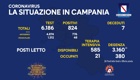 CORONAVIRUS - Regione Campania, 824 positivi su 6.186 tamponi e 7 morti nelle ultime 24 ore