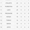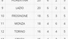 02.12 20:08 - SERIE A - La classifica provvisoria: la Lazio aggancia la Fiorentina e l'Atalanta