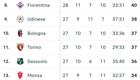 01.04 20:05 - SERIE A - La classifica provvisoria: l'Inter resta al terzo posto, Fiorentina a -1 dalla Juventus