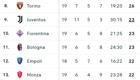21.01 22:52 - SERIE A - La classifica provvisoria: il Torino allunga sulla Fiorentina ed è settimo