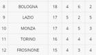 11.11 22:50 - SERIE A - La classifica provvisoria: il Monza aggancia la Roma, Torino a pari punti con la Lazio