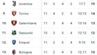 SERIE A - La classifica provvisoria: il Bologna aggancia Fiorentina e Monza a quota 10 punti