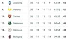 SERIE A - La classifica: l'Atalanta agguanta la Fiorentina, continua la corsa salvezza della Salernitana