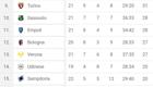 15.01 20:10 - SERIE A - La classifica provvisoria: Lazio al sesto posto, Salernitana ultima a quota 11 punti