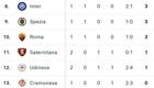 20.08 20:37 - SERIE A - La classifica provvisoria: Lazio e Torino in testa, primi punti per Udinese e Salernitana