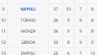 SERIE A - La classifica provvisoria: il Monza aggancia Napoli e Torino, Salernitana ultima