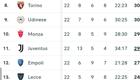 SERIE A - La classifica provvisoria: il Bologna vince e supera Udinese e Torino