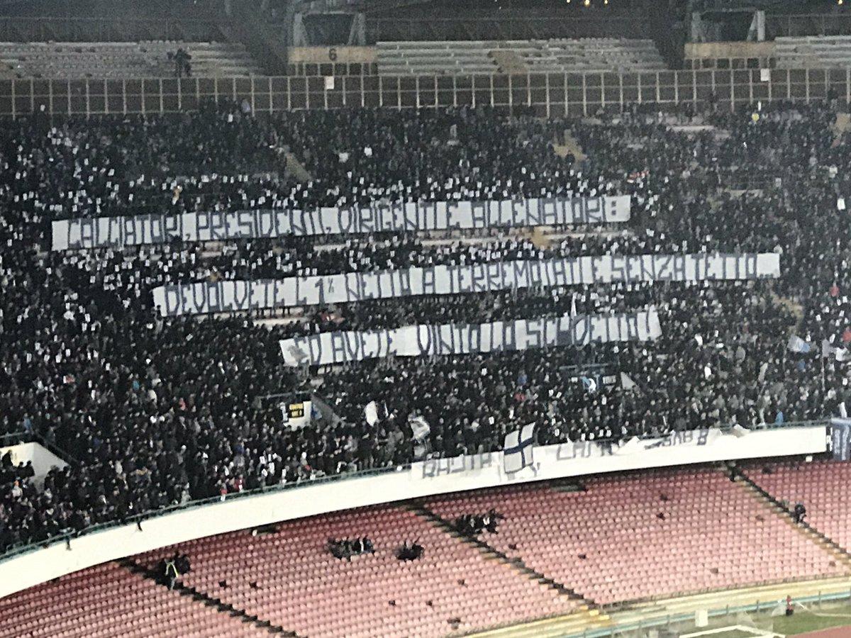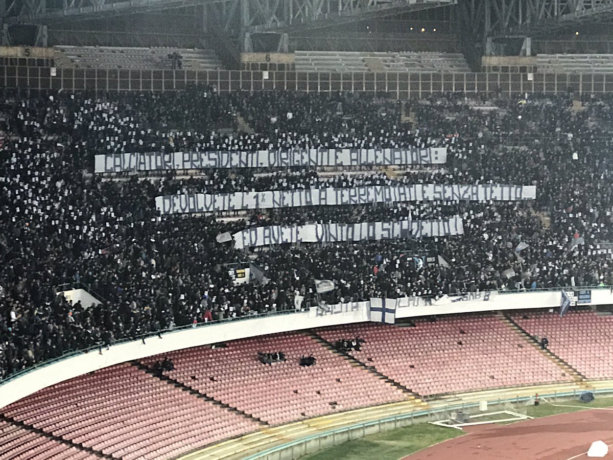 NAPOLI - "Calciatori, Presidenti, Dirigenti e Allenatori: devolvete l'1% netto a terremotati e senza tetto... ed avete vinto lo scudetto" è lo striscione esposto in Curva B in occasione della gara di Coppa Italia Napoli-Fiorentina allo stadio San Paolo. Ecco le foto di NapoliMagazine.Com.