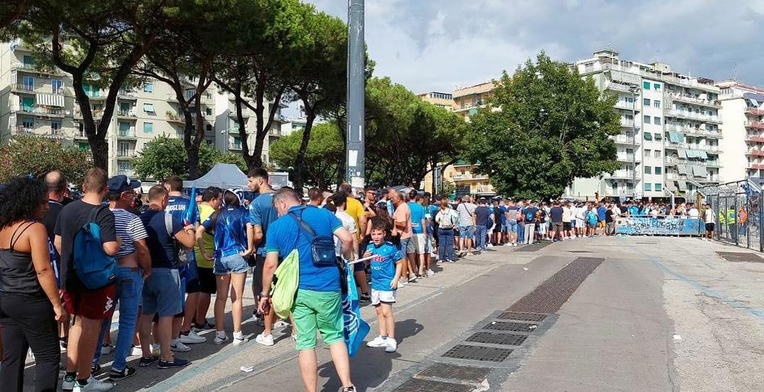 NAPOLI - Napoli-Monza, ecco i tifosi azzurri in fila all'esterno dello stadio Maradona. Ecco la foto di "Napoli Magazine".