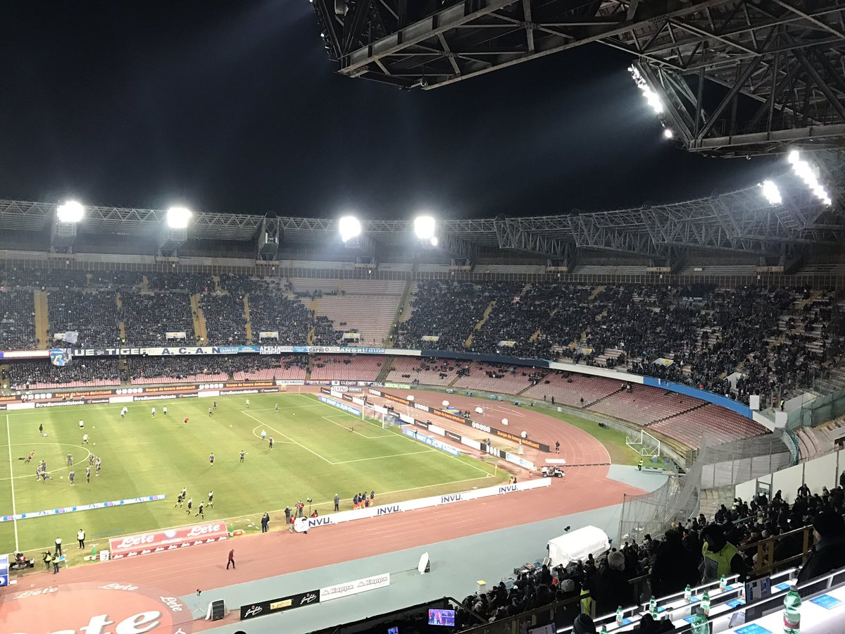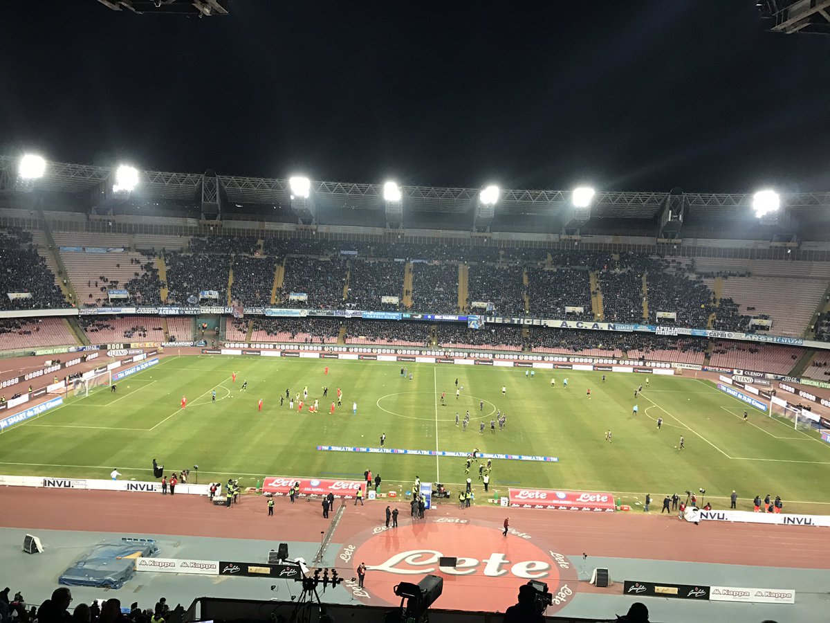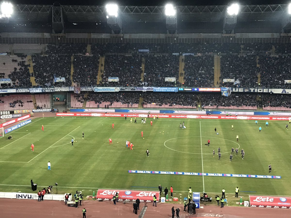 NAPOLI - Nelle foto pubblicate su Twitter da NapoliMagazine.Com ecco gli spettatori sugli spalti al San Paolo in occasionedi Napoli-Palermo.