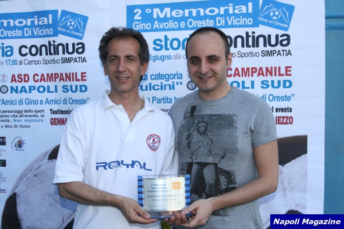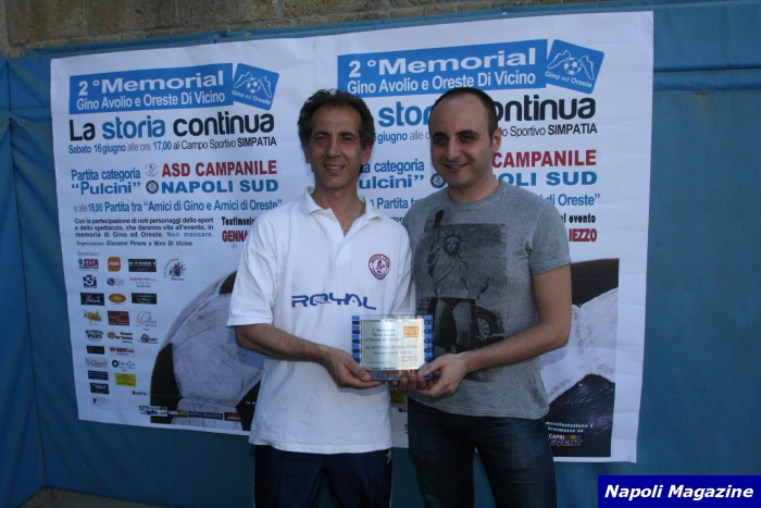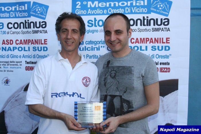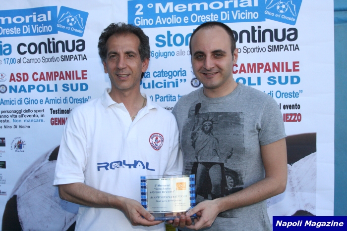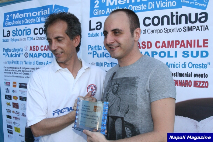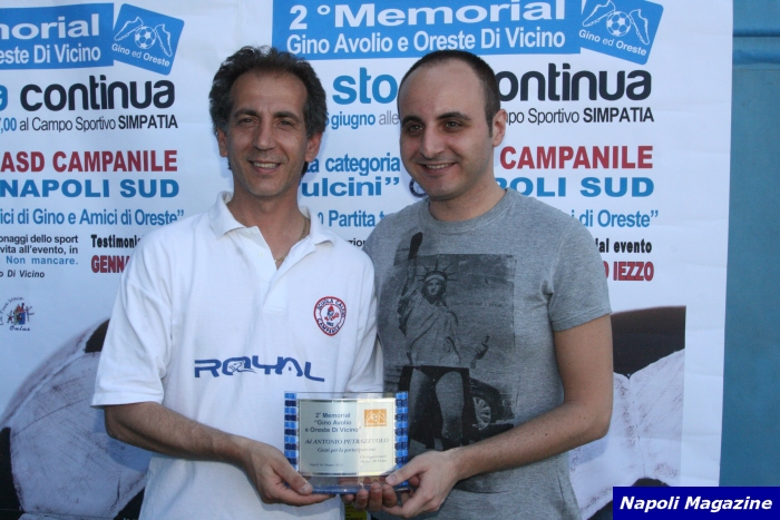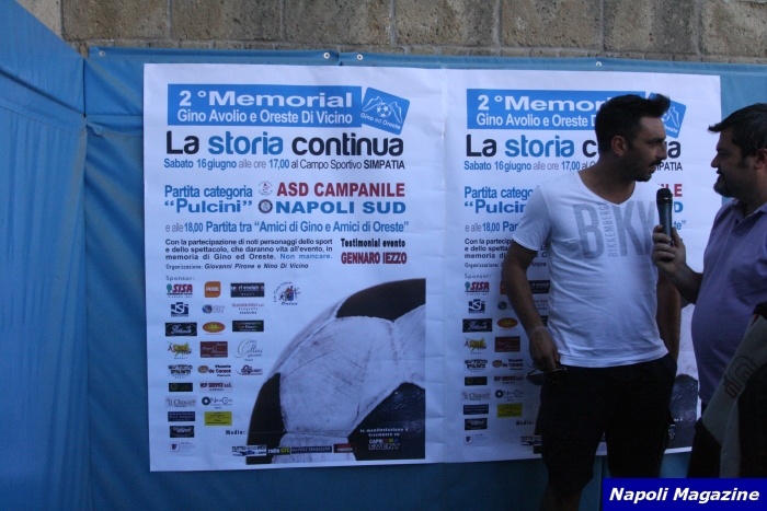 NAPOLI - Si e' tenuto allo stadio Simpatia di Pianura il 2° Memorial Gino Avolio e Oreste Di Vicino, organizzato da Gianni Pirone, Barbara Carere e Nino di Vicino. Hanno partecipato i calciatori: Giorgio Di Vicino, Gennaro Iezzo, Alfonso Camorani, Pasquale Foggia, Emanuele Troise (ex Napoli), Pasquale Scielzo (Primavera del Napoli), Giuseppe Della Corte (portiere del Cosenza). In campo anche i giornalisti Antonio Petrazzuolo, Stefano Sica, Carmine Martino, Fabrizio Cappella e lo speaker dello Stadio San Paolo Daniele Decibel Bellini. "Napoli Magazine", presente all'evento, ha realizzato 146 Foto ed un Video.