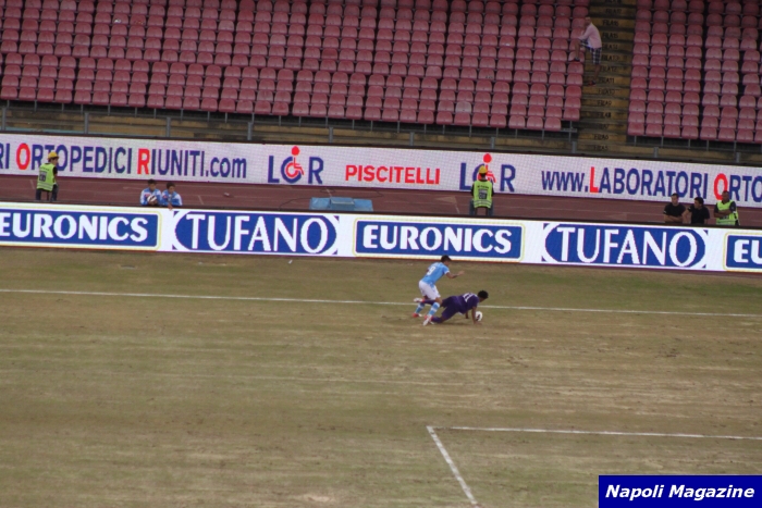 NAPOLI - "Napoli Magazine" ha realizzato un ampio reportage fotografico, con ben 598 Foto, in occasione di Napoli-Fiorentina, secondo turno del campionato di serie A vinto dagli azzurri con il risultato di 2-1. Dal pre partita all'esterno dello stadio, al Focus sul terreno di gioco apparso davvero in condizioni pessime. Tutte le sequenze dei gol, poi le immagini dei protagonisti in "Mixed Zone" e in "Press Conference", senza dimenticare l'occhio clinico all'uscita degli spogliatoi, con Hamsik, il papà Richard, Miguel e Virginia Britos, Juan Camilo e Maria Angelica Zuniga, Cuadrado, Migliaccio, Jovetic, Inler, le signore Maggio e Mesto, Gigi D'Alessio e i campioni olimpici in posa per noi..