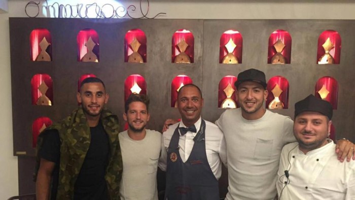 Cena alla Trattoria Medina di Amedeo Quagliata a Napoli per gli azzurri Ghoulam, Mertens ed El Kaddouri. Ecco l'immagine.