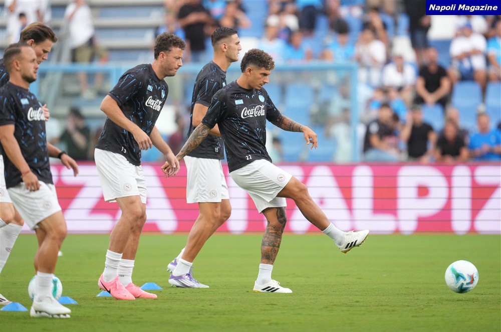 CASTEL DI SANGRO - Poker di gol del Napoli nell'amichevole giocata allo stadio Teofilo Patini contro l'Egnatia nel quarto giorno di ritiro estivo a Castel di Sangro. Nelle foto di "Napoli Magazine" ecco un focus sulle squadre in campo, la panchina ed i gol segnati da Kvaratskhelia, Politano, Simeone e Ngonge.