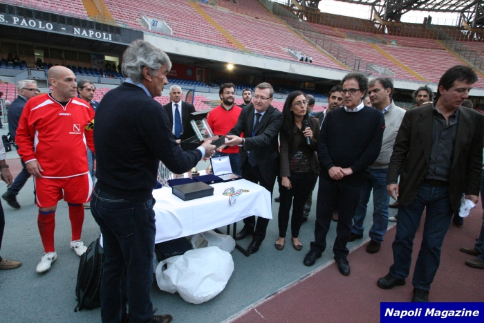 NAPOLI - Si e' tenuto allo Stadio San Paolo di Napoli un Quadrangolare tra la Commissione Europea, il Comune di Napoli, la Regione Campania e l'USSI Campania. Nella formazione dei giornalisti campani, con Gianfranco Lucariello capitano, sono scesi in campo tra gli altri: Antonio Petrazzuolo, Salvatore Caiazza, Antonio Russo, Gianluca Monti, Mimmo Malfitano, Dino Manganiello, Luigi Liberti, Pasquale Gallo, il mister Villa, Riccardo Sorrentino, Carlo Caporale e Fabrizio Cappella. "Napoli Magazine", presente all'evento (al quale hanno partecipato anche il sindaco Luigi De Magistris, l'assessore Pina Tommasielli ed Antonio Juliano), ha realizzato 456 Foto.